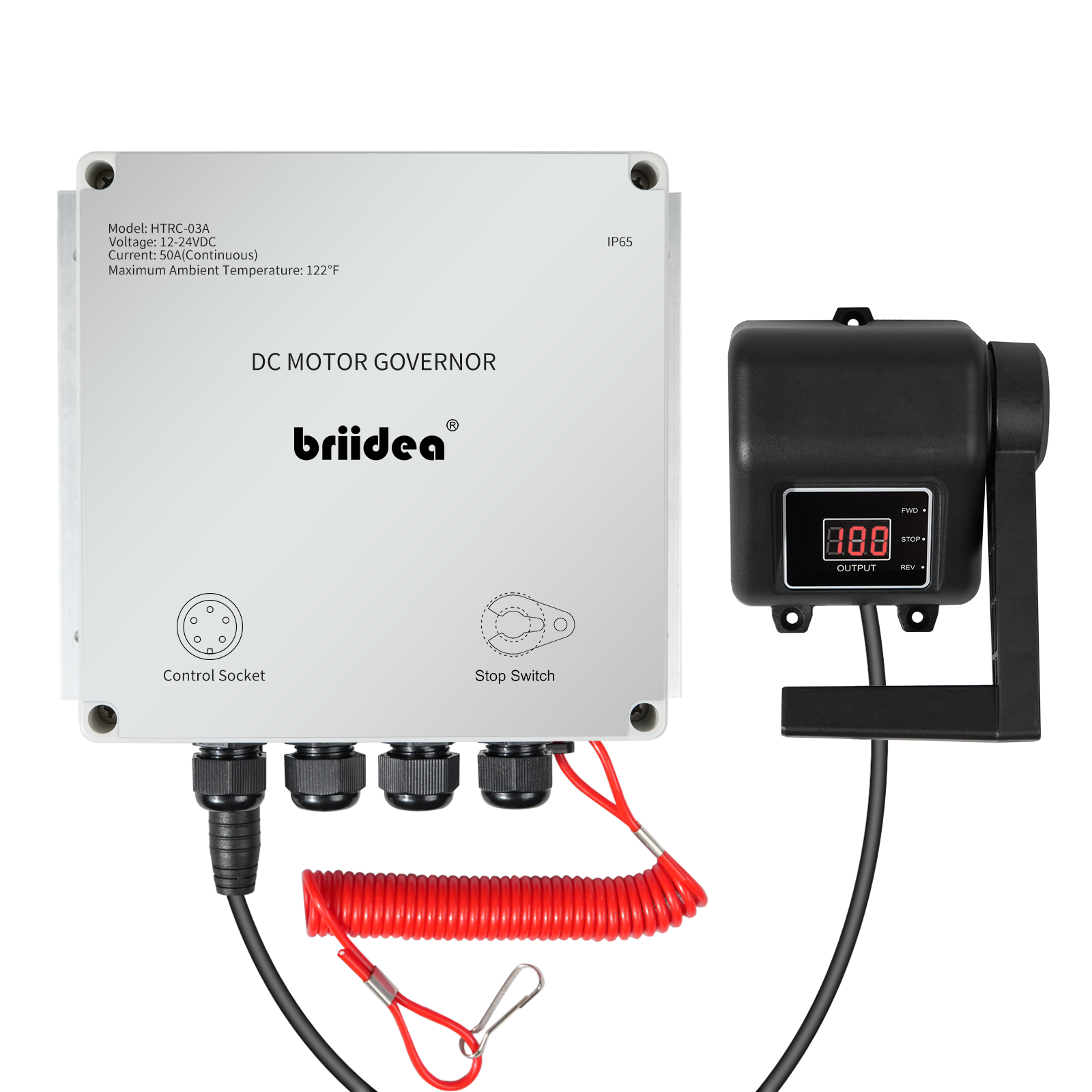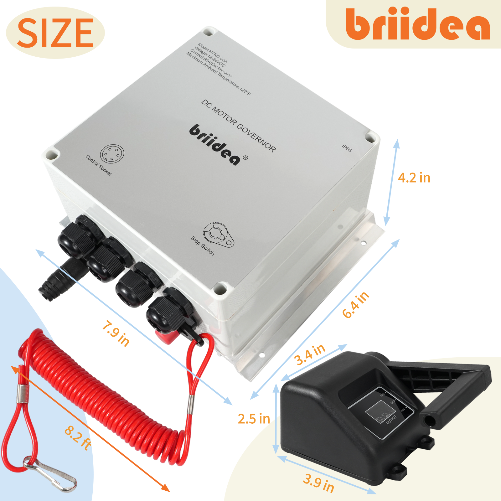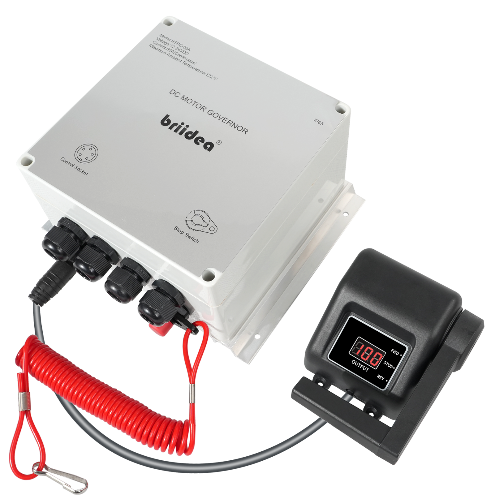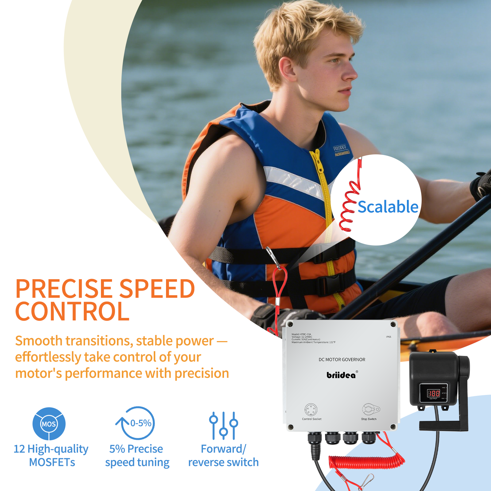 PWM Controller (2025 New), Briidea 12V/24V 50A DC Motor Speed Controller with Handle Control & Quick Shutoff Switch, IP65 Waterproof, Overheat Protection, for 55LB Trolling Motor