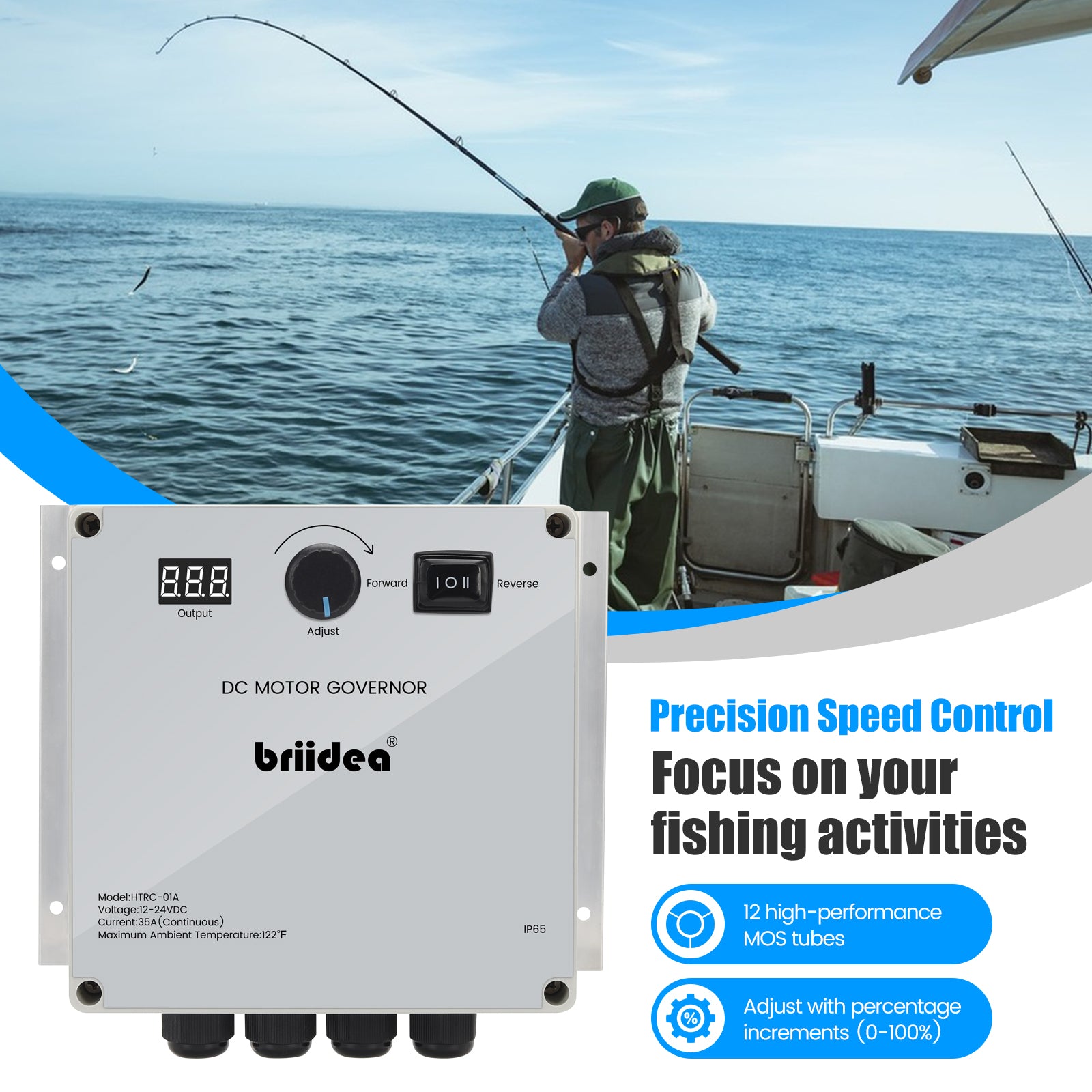 - VERSATILE COMPATIBILITY: The Briidea controller is simple to install, supporting wire connections up to 6 AWG. Compatible with 12/24V DC systems and capable of handling up to 35A, it works seamlessly with trolling motors up to 55 lbs, making it suitable for various applications such as trolling boat engines, blowers, fans, and electric mowers
